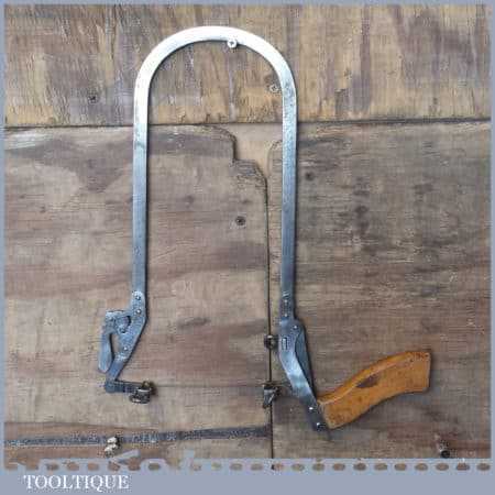 Vintage model maker’s steel framed fretsaw with beechwood handle in good used condition.