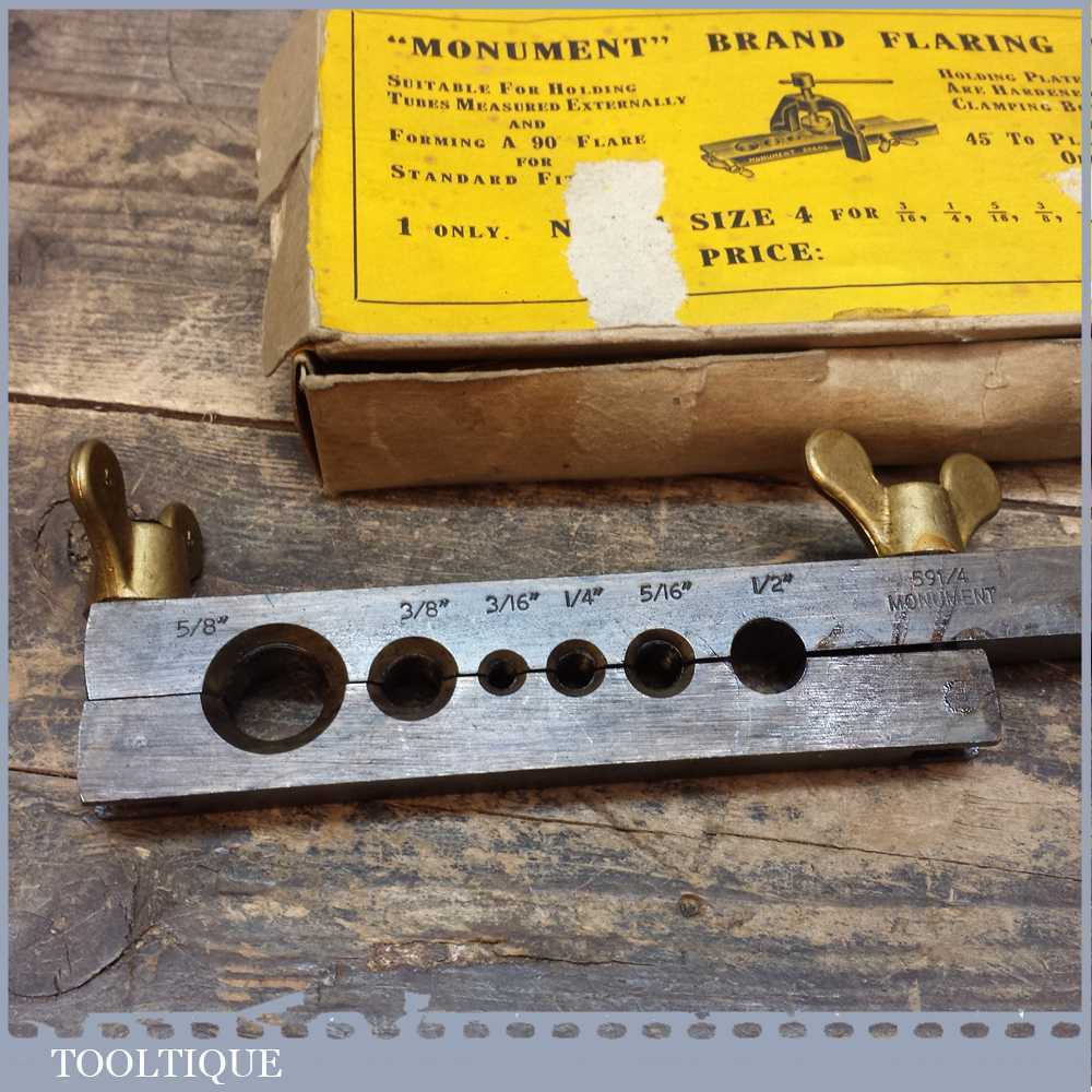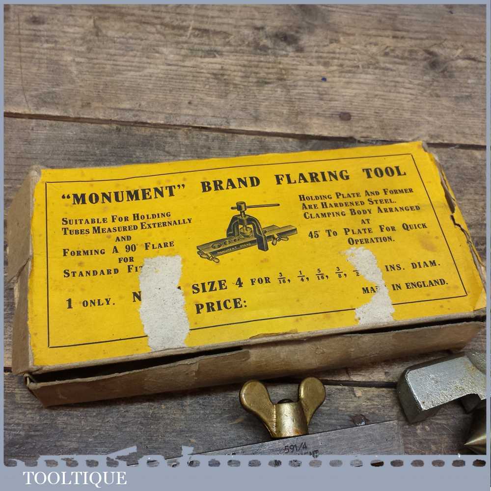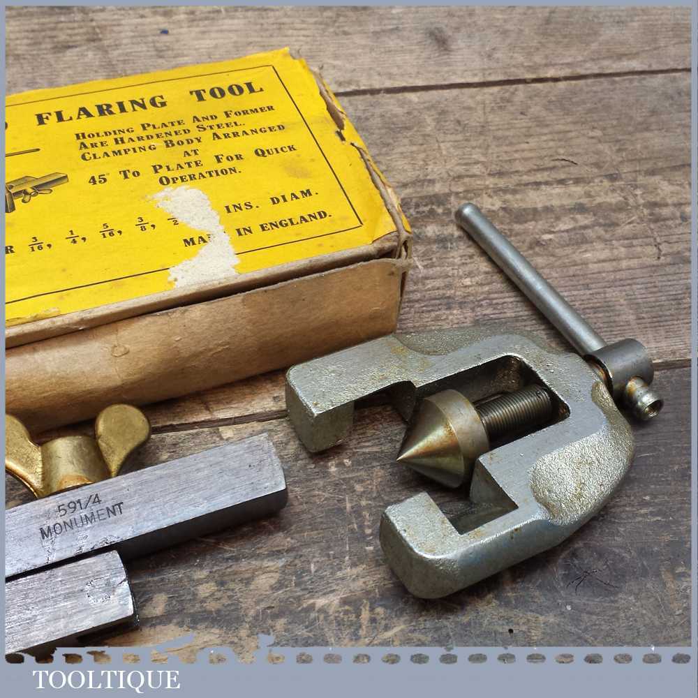 Vintage Monument 90 degree Pipe flaring tool, incorporating holding plate and former complete in original box.
