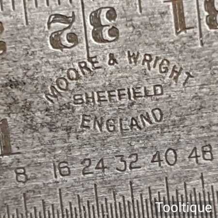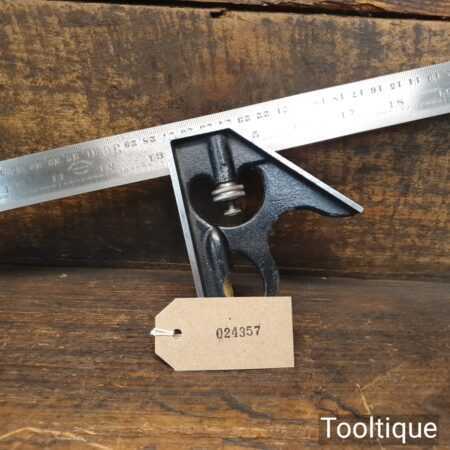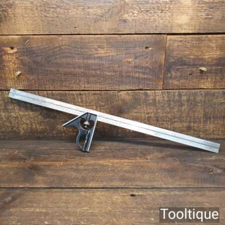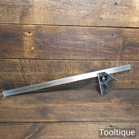 Vintage Moore & Wright cast steel adjustable combination square with extra-long 24” metric / imperial ruler, fully refurbished and in good used condition