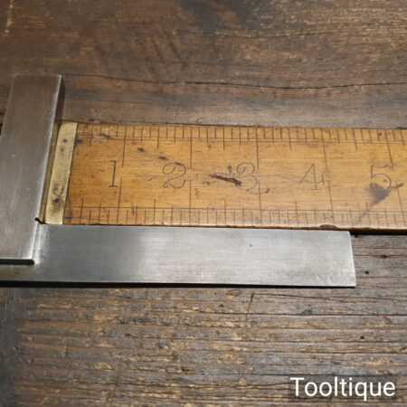 Vintage Moore & Wright engineer’s precision set square with 4 ¼” blade, in good used condition.