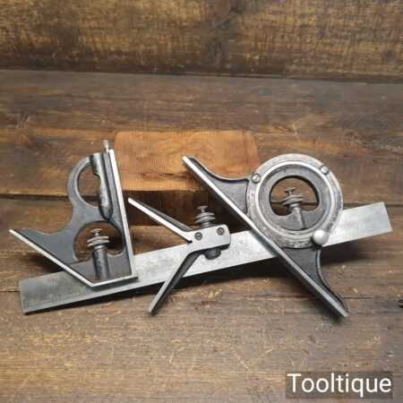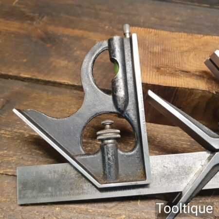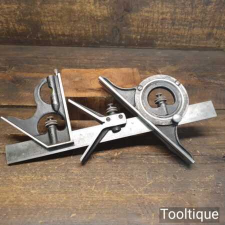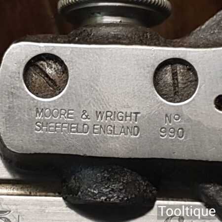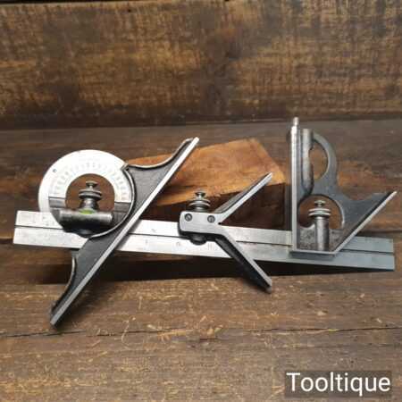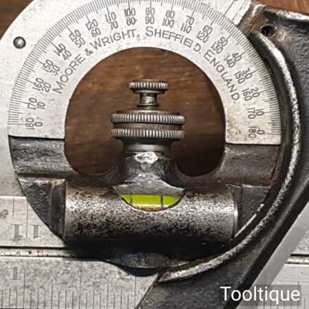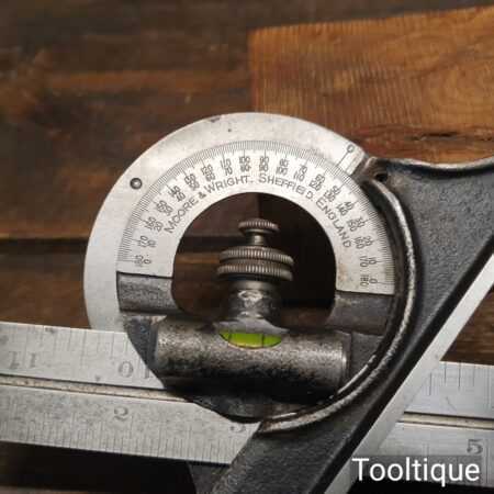 Vintage Moore & Wright No: 990 cast steel combination square, protractor and centre finder complete and in good used condition