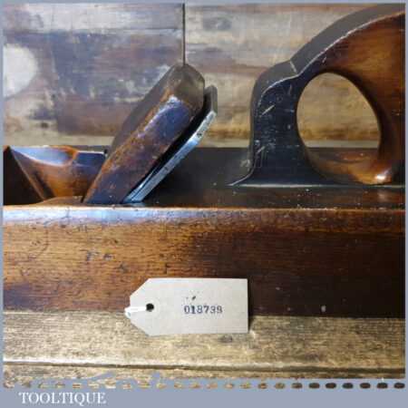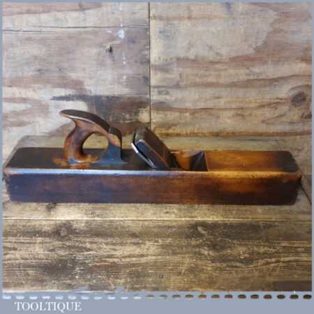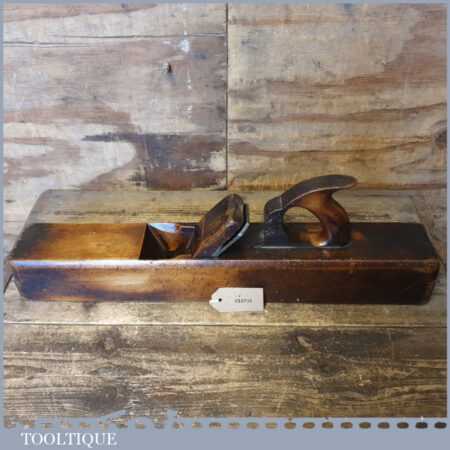 Vintage Moseley & Son carpenter’s 22” beechwood trying plane in good used condition. Lapped flat and sharpened ready for use. Note: Boxwood Insert added to close throat on the sole