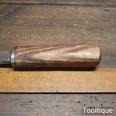The chisel has been checked to ensure the tang is seated properly and the handle is solid and fit for use. All refurbished chisels are water cooled during the sharpening process to ensure the tempering is not affected.
