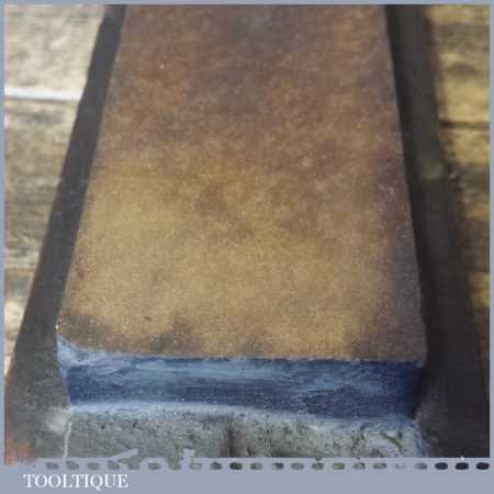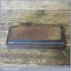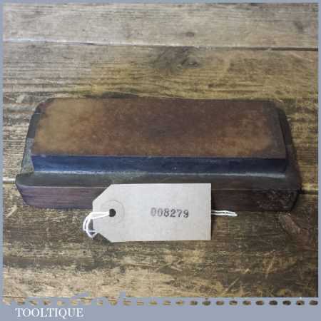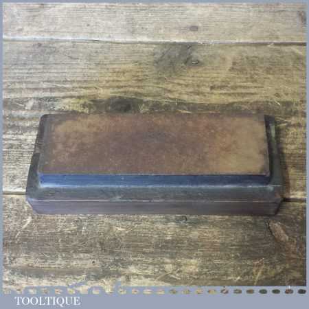 Vintage natural Washita oil stone in a on wooden base no lid measuring approx 6” in length and 2” in width in good used condition. Note: this stone has been lapped flat ready for use