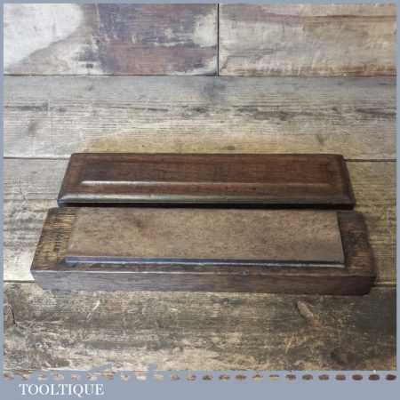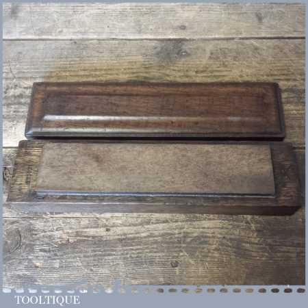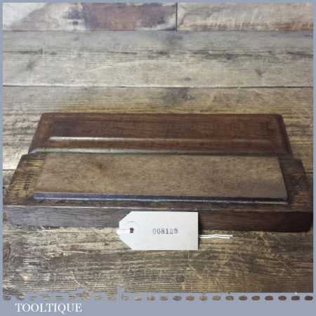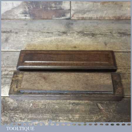 Vintage Natural Washita oil stone in a nice mahogany box measuring approx 9” in length and 2” in width in good used condition. Note: this stone has been lapped flat ready for use.
