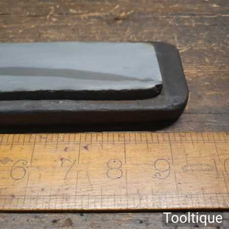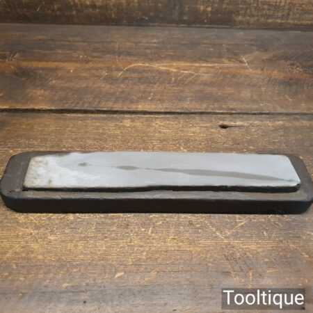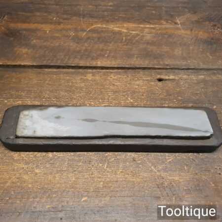 Vintage natural Charnley Forrest honing stone 9” x 1 ½” on wooden base in good used condition. Note: lapped flat ready for use. Suitable for use with a good quality lapping fluid, see our Acutus Brand in store.