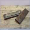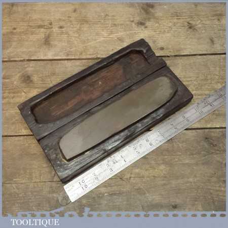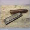 A very nice quality vintage natural oil stone in good condition that has been re-dressed flat for use. The stone has the characteristics often seen in Belgian Coticule and would be suitable for honing to a razor sharp edge. I was tempted to attribute it to Charnley Forest but for its colouration, however this could have been altered having been soaked in oil for many years.