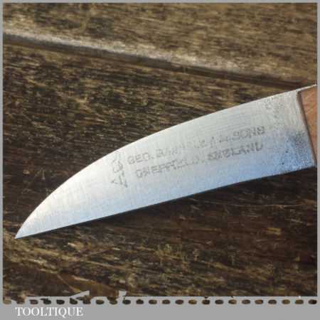 Vintage ‘New Old Stock’ Geo Barnsley & Sons cobbler’s leatherworking shoe knife with beechwood handle in unused condition. Finished product with clear lacquered finish to the handles. These are nice quality tools with good steel made in around the 1960’s.