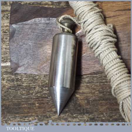 Vintage nickel-plated cast steel plumb bob with string, in good used condition.