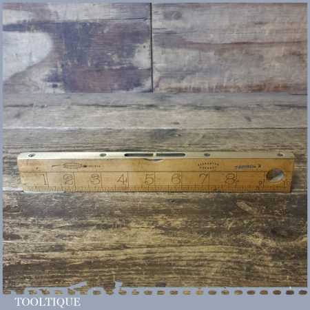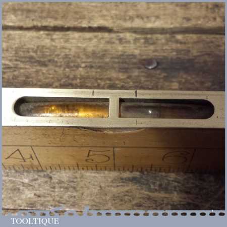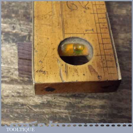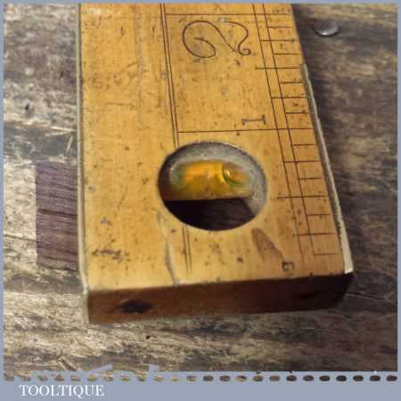 Vintage No 1372 J. Rabone & Sons 10” boxwood spirit level calibrated in inches, in good used condition. Note: the level hasn’t been tested and may require resetting in putty if intended for use.