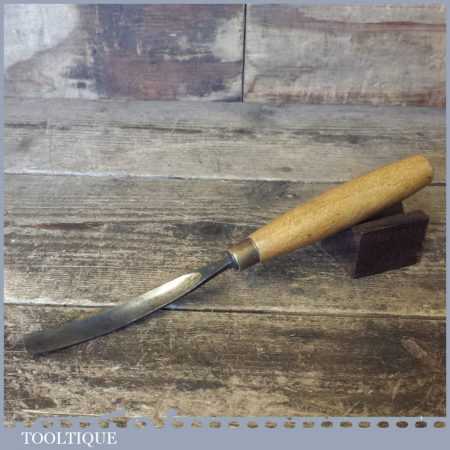 Vintage No: 14 I. Sorby Mr Punch Brand 1/2” curved wood carving gouge chisel with beech wood handle, in good used condition, fully refurbished, sharpened and honed ready for use.