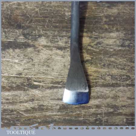 The chisel has been checked to ensure the tang is seated properly and the handle is solid and fit for use. All refurbished chisels are water cooled during the sharpening process to ensure the tempering is not affected. These old cast steel chisels are hand forged and far superior in quality because of the high carbon steel that was used which produces a keener edge, this was also generally used throughout the full length.