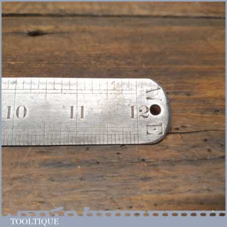 Vintage No: 28 J. Rabone & Sons 12” double sided imperial steel ruler in fair used condition.