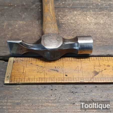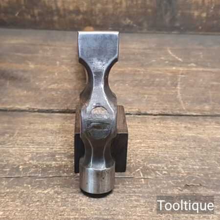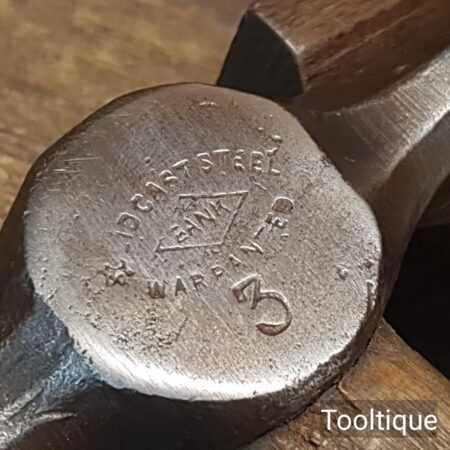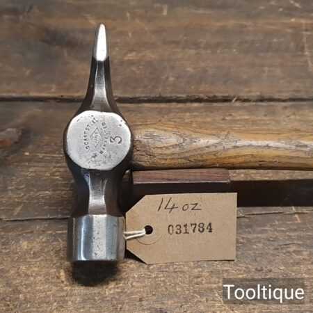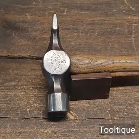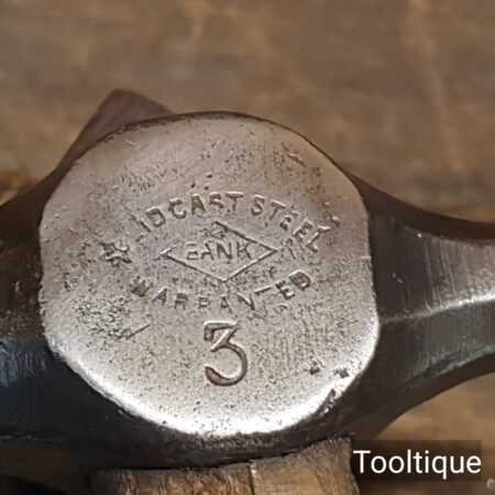 Vintage No: 3 Solid Cast Steel cross pein hammer with a wooden handle in good used condition. Note: Handle fits tightly to the head, total weight including handle is approx 14 Ounces.