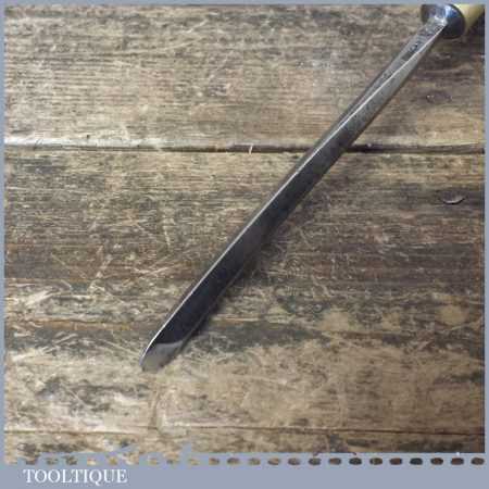 The chisel has been checked to ensure the tang is seated properly and the handle is solid and fit for use. All refurbished chisels are water cooled during the sharpening process to ensure the tempering is not affected. These old cast steel chisels are hand forged and far superior in quality because of the high carbon steel that was used which produces a keener edge, this was also generally used throughout the full length.