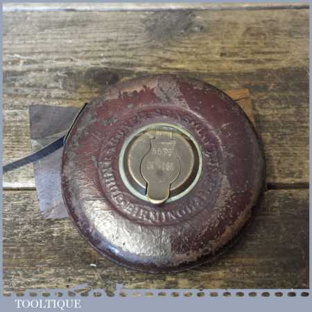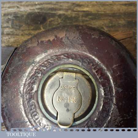 Vintage No: 4151 John Rabone & Sons 50ft leather bound steel tape measure in good used condition.