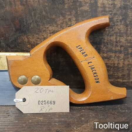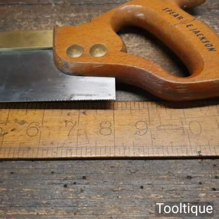 Vintage No: 52 Spear & Jackson 8” brass back dovetail saw with 20 tpi, fully refurbished and sharpened rip ready for use. Note: Brass studded.