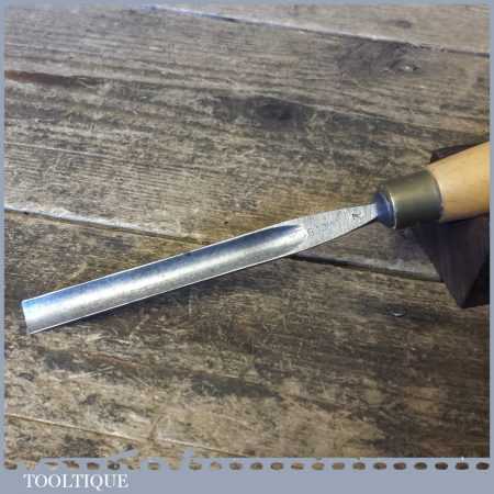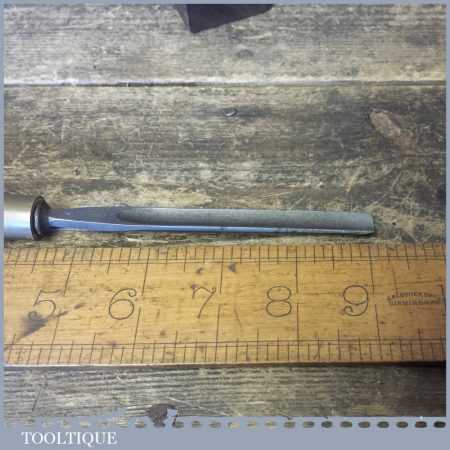 The chisel has been checked to ensure the tang is seated properly and the handle is solid and fit for use. All refurbished chisels are water cooled during the sharpening process to ensure the tempering is not affected. These old cast steel chisels are hand forged and far superior in quality because of the high carbon steel that was used which produces a keener edge, this was also generally used throughout the full length.