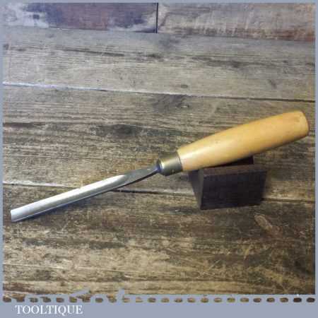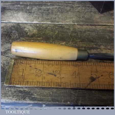 Vintage No: 7 Henry Taylor Acorn 7/16” straight wood carving gouge chisel with boxwood handle, in good used condition, fully refurbished, sharpened and honed ready for use. Note: this is an earlier model and has different qualities to those made today.