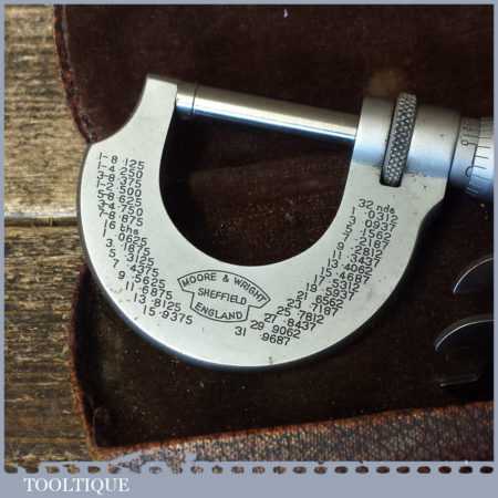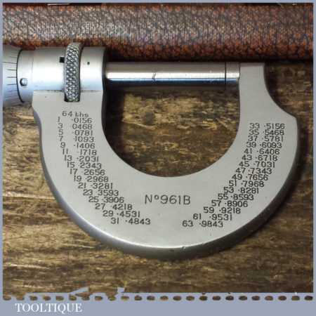 Vintage No: 961b Moore & Wright 0”- 1” micrometer in original case and in good used condition.