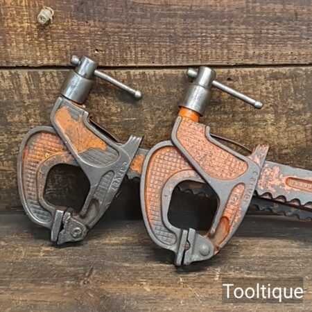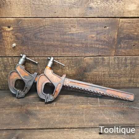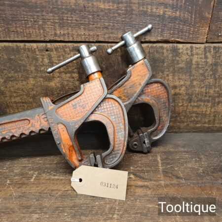 Vintage No: T205 pair of 12” Carver & Co welders Heavy Duty clamps in good/fair used condition. Note: Paint loss but work fine.