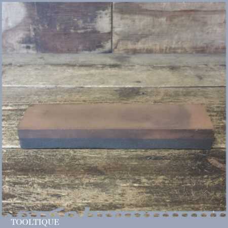 Vintage Norton 8”x 2”x 1” combination oil stone with fine and course grit, in good used condition. Note: this stone has been lapped flat ready for use. Please also note: chip on the end.