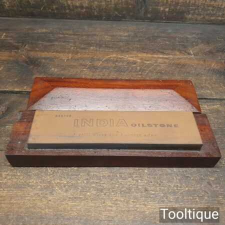 Vintage Norton India fine Oil stone 8″ x 2″ in rosewood box lapped flat in good used condition. Note: Underside has been used.