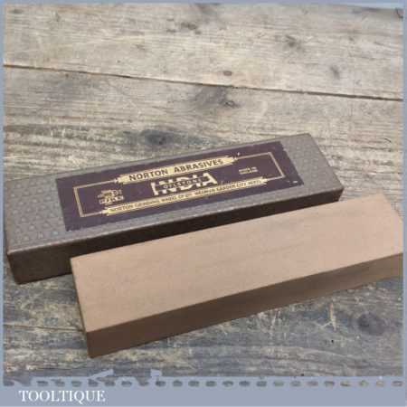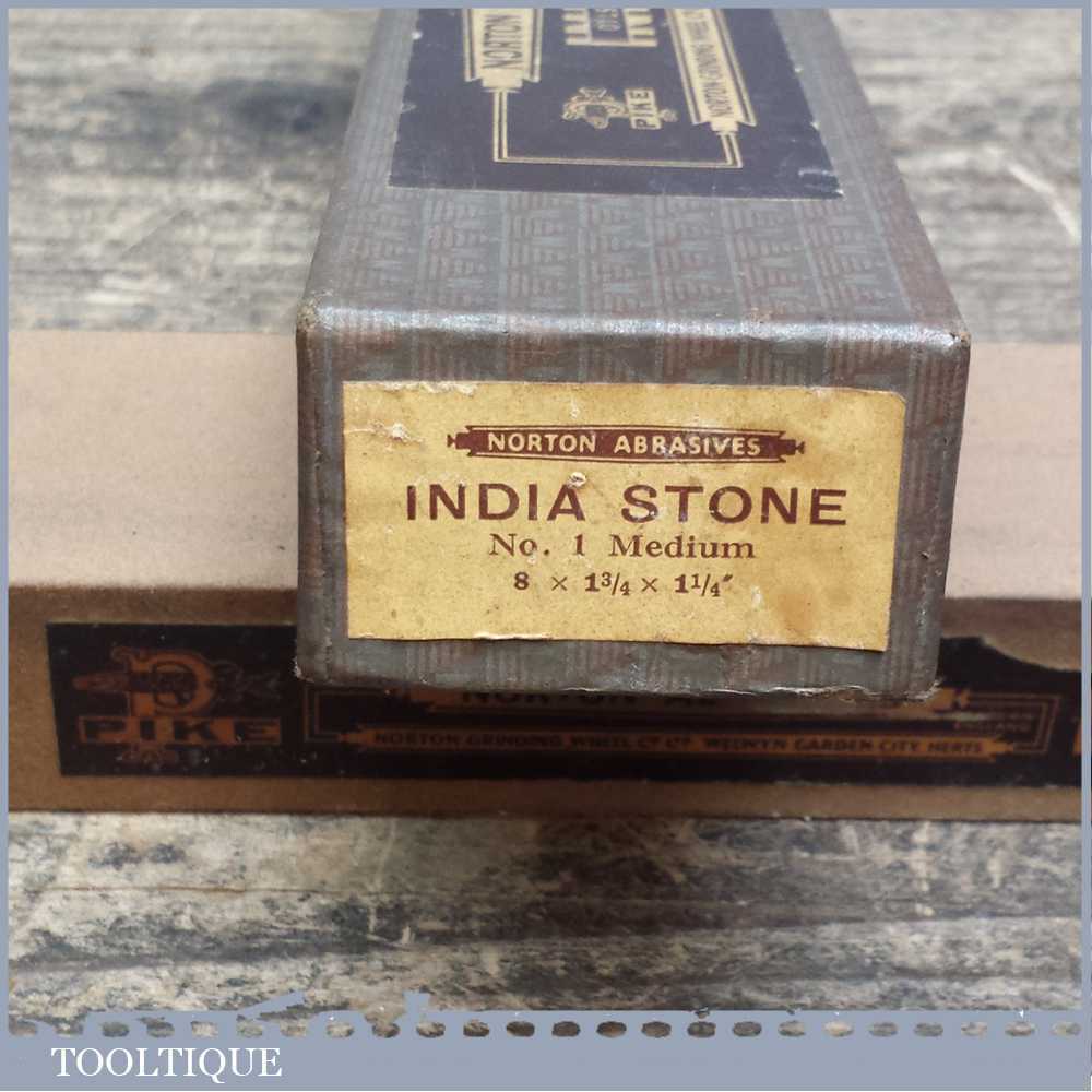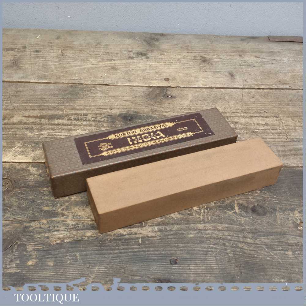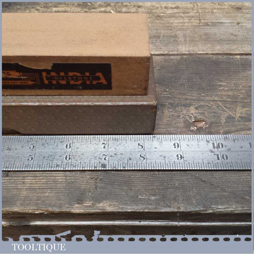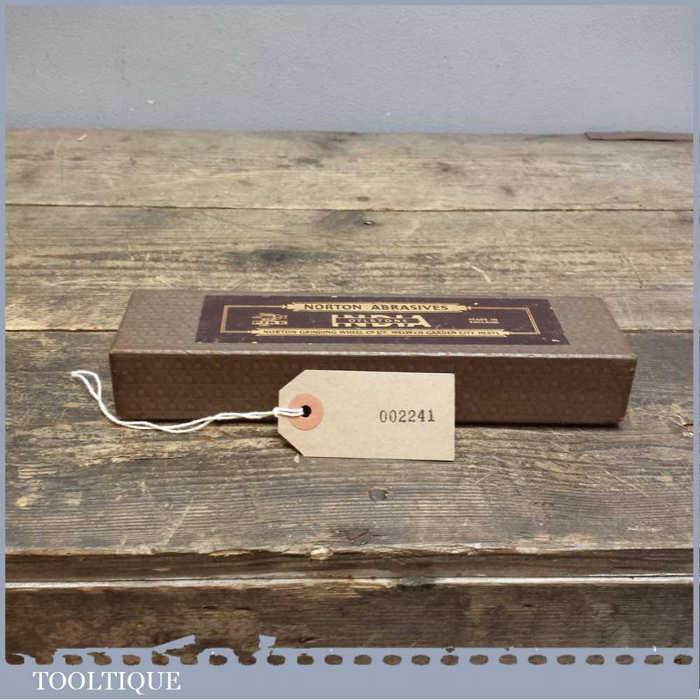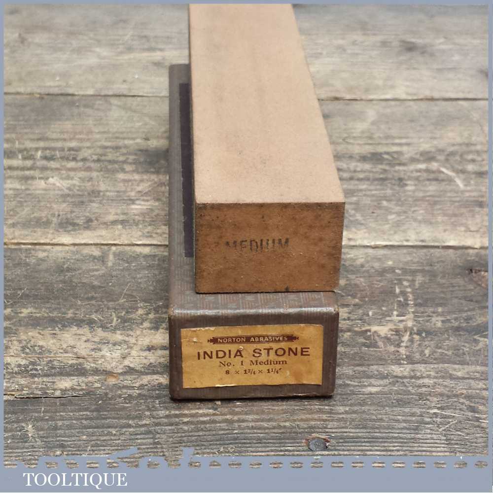 Vintage Norton India medium grit oilstone in its original cardboard box, in good condition.