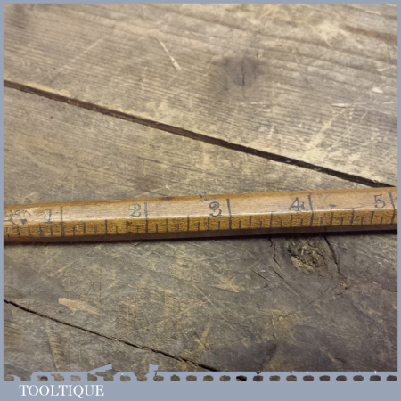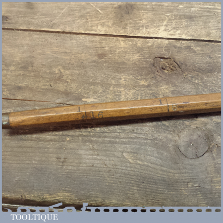 A scarce vintage octagonal beech wood Yard stick with both inch and 16th of yard markings and brass ferrules at both ends. The yardstick has warped over the time which is quite common for rounded types of sticks but otherwise in good condition. .