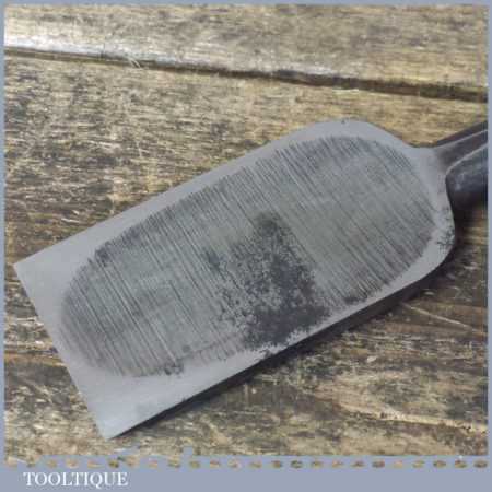 Vintage old 1 3/16” Signed Japanese laminated forge steel firmer chisel with a replacement reinforced hardwood handle in good used condition, fully refurbished sharpened and honed ready for use. I do not profess to be an expert on Japanese chisels and cannot identify the maker but these older chisels were not massed produced as they are today.