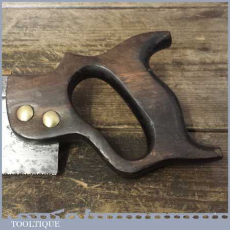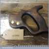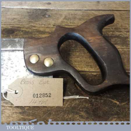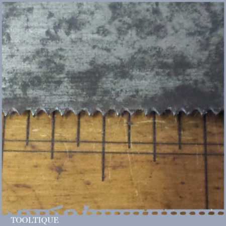 The saw has been thoroughly cleaned, jointed, resharpened and set by hand so that all the hard work of getting an old vintage saw right has been undertaken. We do this so that the next sharpening is easier and no more than a quick freshen up would be required. Those who are familiar with sharpening will know this is no small job and requires skill, effort and time to achieve good results.