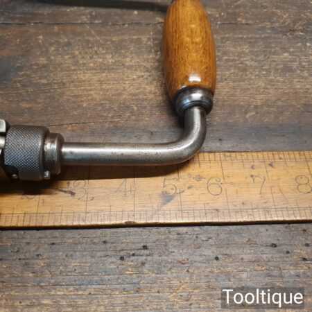 Vintage P & B carpenter’s ratchet brace with beechwood handles and a 11” swing in good used condition, refurbished ready for use.