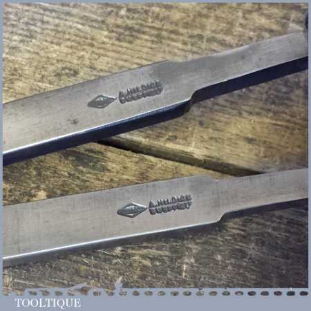 Vintage pair of ½” wide A. Hildick Diamic flat woodturning scraper chisels in good used condition.