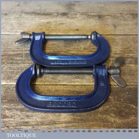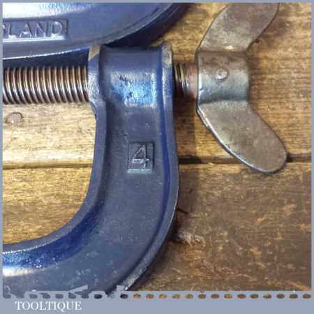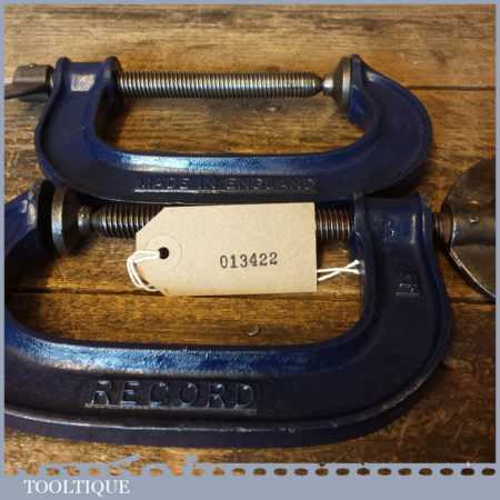 Vintage pair of 4” Record heavy duty G clamps refurbished and in good used condition.