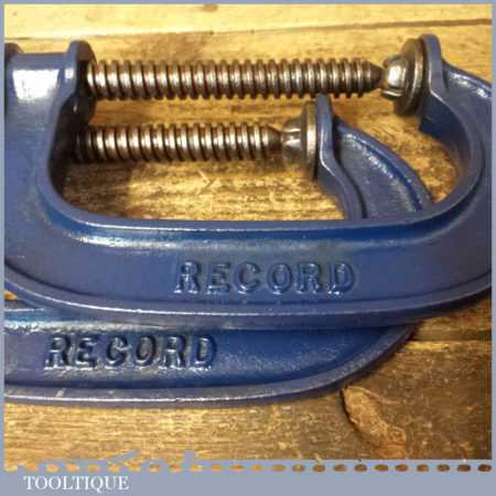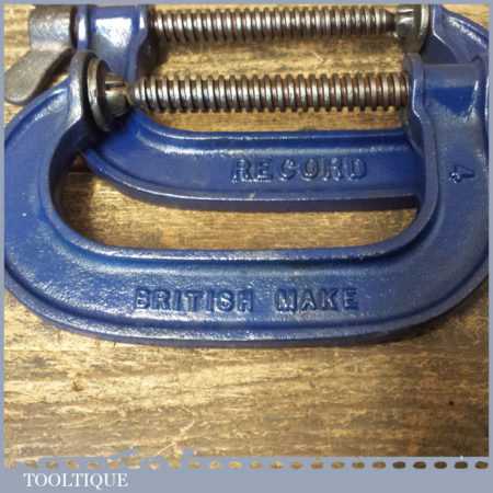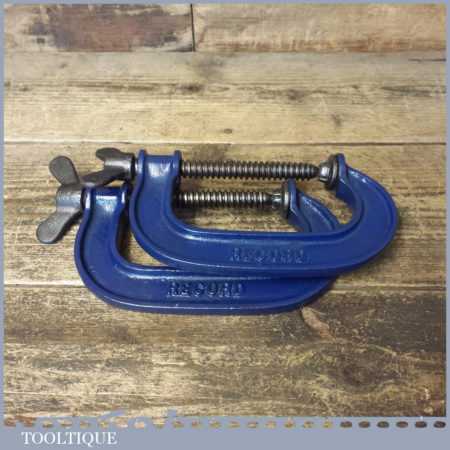 Vintage pair of Record 4” woodworking ‘G’ clamps refurbished and in good used condition and ready for use.