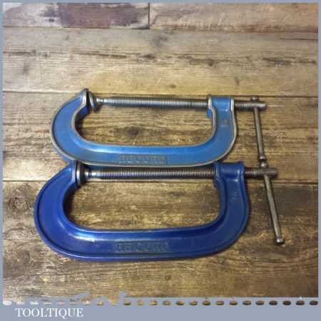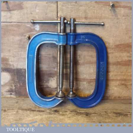 Vintage pair of 6” Record engineering heavy duty “G” clamps in good used condition and ready for use.