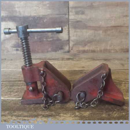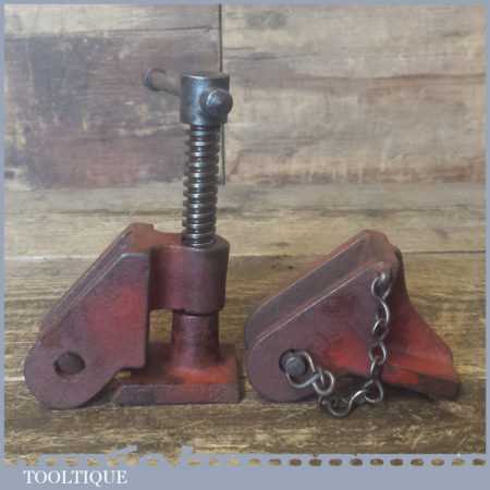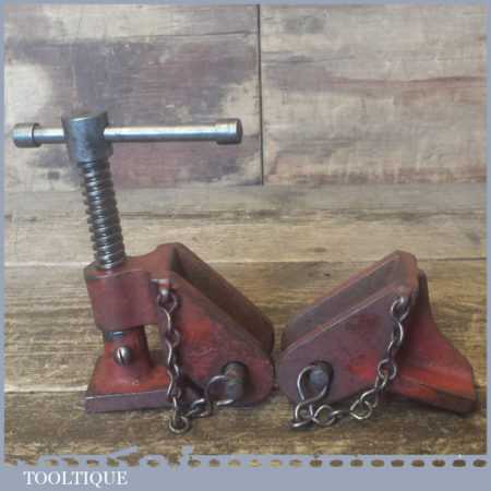 Vintage pair of cast steel sash clamp heads in good used condition.
