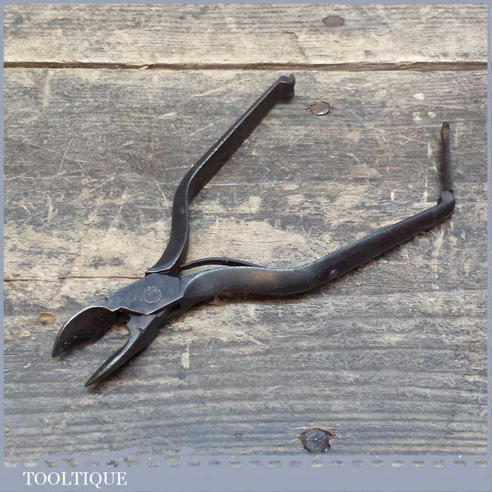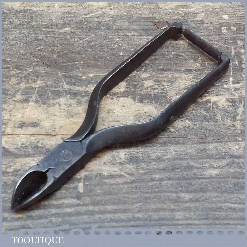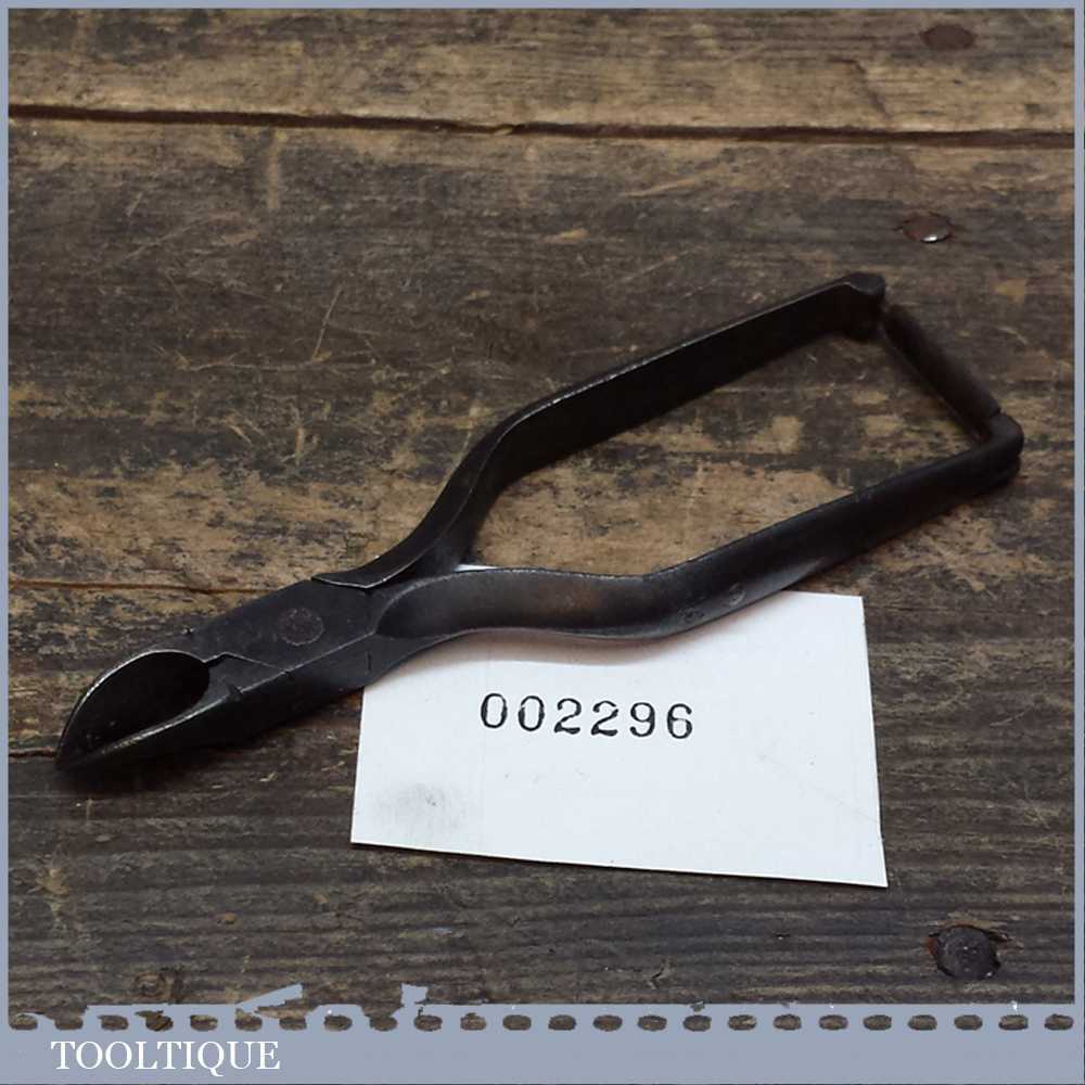 Vintage pair of leatherworking spring loaded side cutters for trimming tail ends. These are a nice shape with a locking clip at the end of the handles.