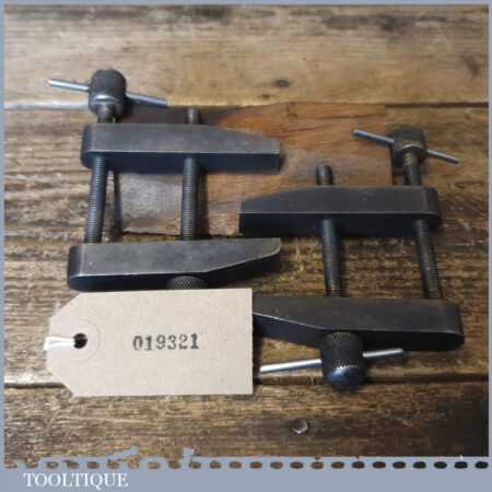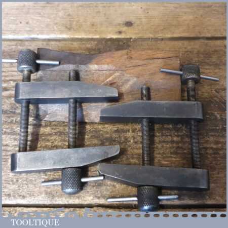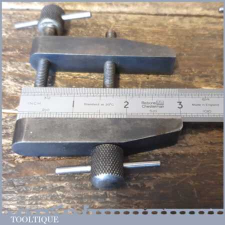 Vintage pair of 3” Moore & Wright toolmakers clamps in good used condition