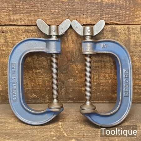 Vintage Pair of 3” Record fine threaded G Clamps in good used condition. Note: These adjust freely.