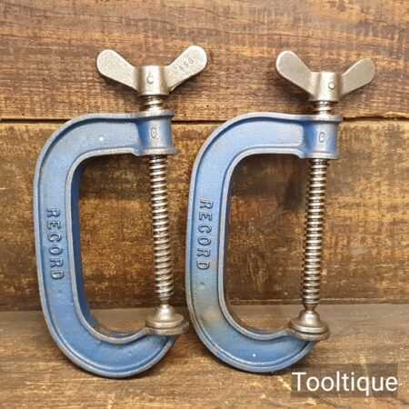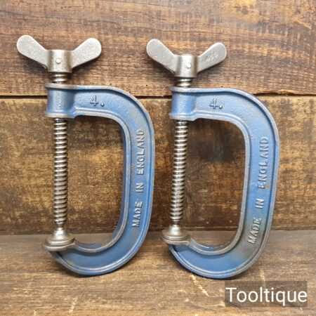 Vintage Pair of 4” Record G-Cramps with fine threads in good used condition.