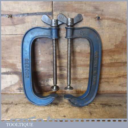 Vintage pair of Record 8” woodworking ‘G’ clamps in good used condition and ready for use.