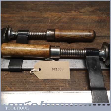 Vintage pair of 9” quick release woodworking clamps in good used condition and ready for use.