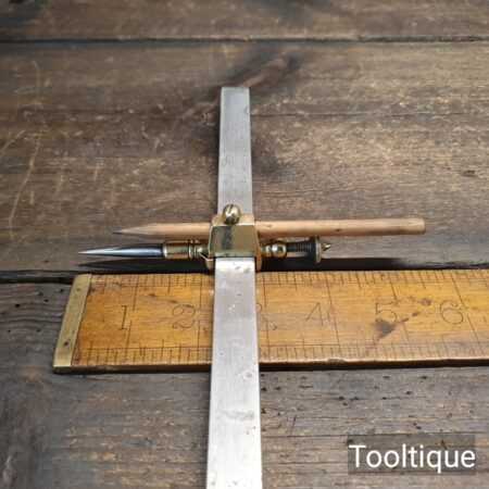 Vintage pair of brass trammel points with pencil holder, refurbished ready for use and in good used condition.