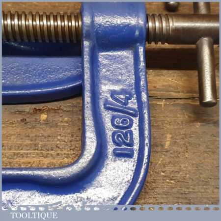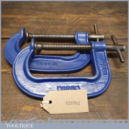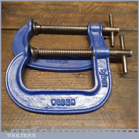Vintage pair of No: 126/4 Woden 4” woodworking ‘G’ clamps in good used condition and ready for use.