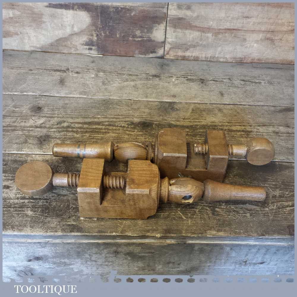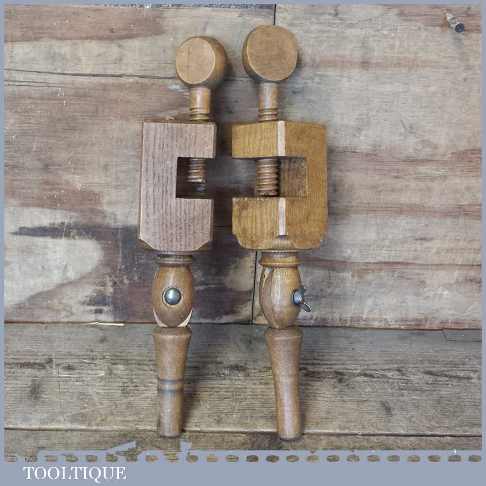 Vintage pair of oak wood carvers clamps in good used condition.