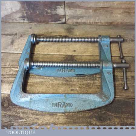 Vintage pair of Paramo 8” heavy duty square threaded ‘G’ clamps in good used condition and ready for use.