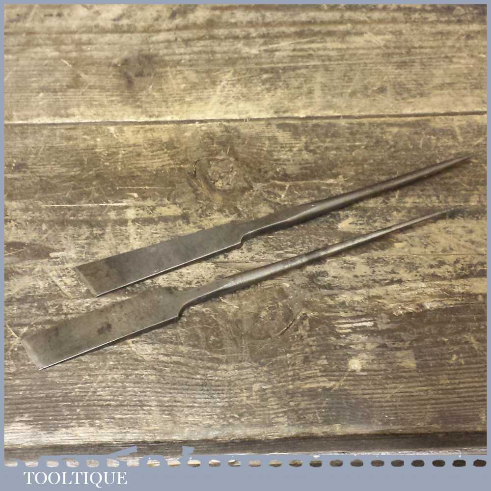 Vintage Pair of Quality leather working scribing and cutting tools in good used condition. These are quality tools and one is named with good maker’s mark and prize metal stamp.