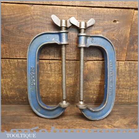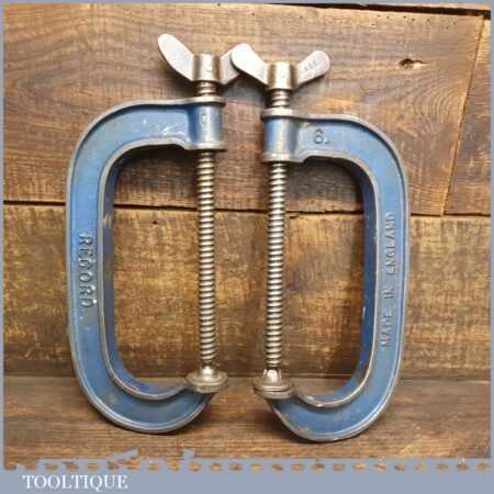 Vintage pair of Record 6” woodworking ‘G’ clamps in good used condition and ready for use.