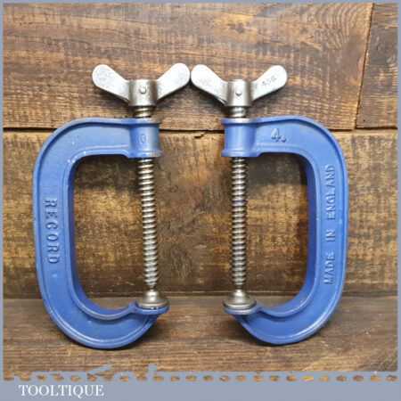 Vintage pair of Record 4” woodworking ‘G’ clamps in good used condition and ready for use.